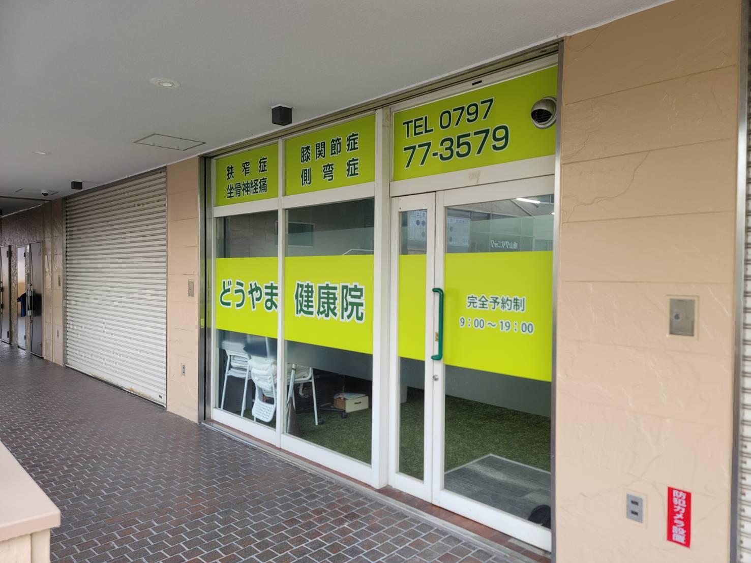 ④ ようこそ「どうやま健康院」へ 緑色の扉が目印です