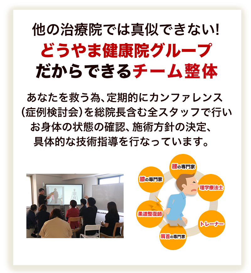 とにかくまずは先生にお話をすること。話だけでも先生は親身になって聞いてくれます。悩まないで1度どうやま健康院に来てください。