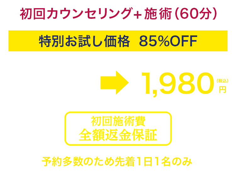 ここまで聞いてまだ不安なあなたへ初回の施術で効果を実感できなければ施術費を全額返金します。