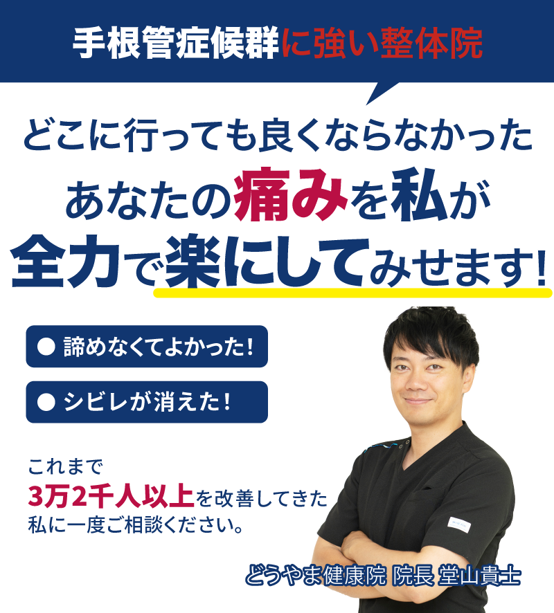 なぜ、3万2千人以上の痛みを改善できたのか?その秘密は、「根本治療の堂山メソッド」です。